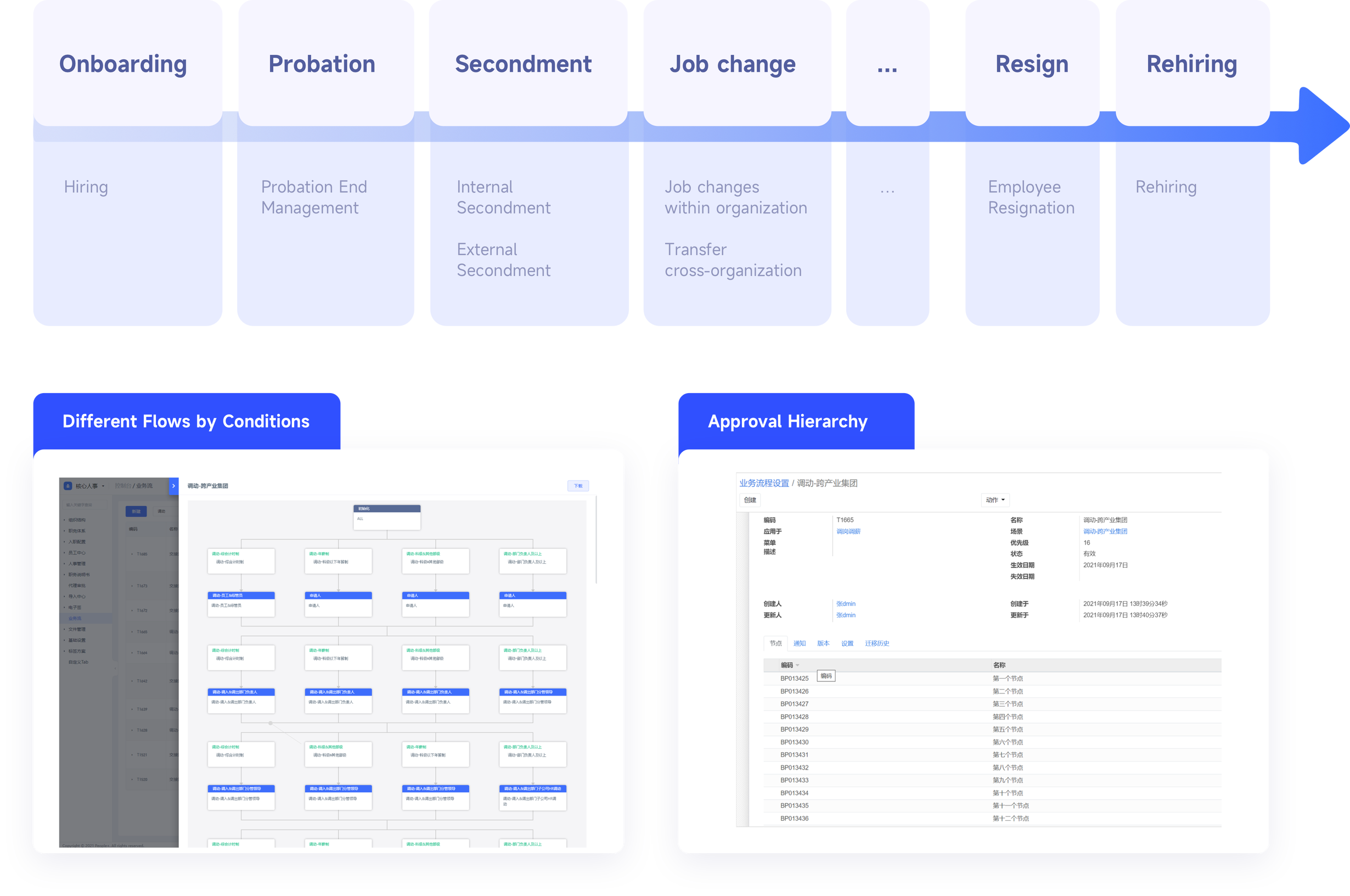 Support concurrent job management and can record special work relationship such as HRBP, ITBP etc.